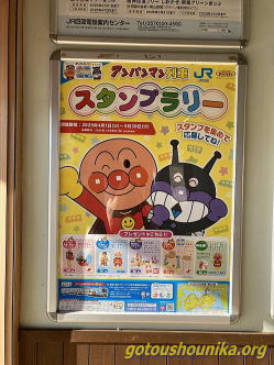 JR大洲駅にありました。特急宇和海は最近2両とか短いのであまり見かけませんが、四国で走っている列車で乗って・見てみたいものですね。車内もアンパンマンがいっぱいですから。